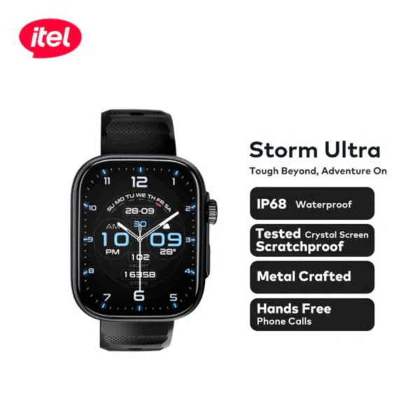₦24,300.00 Itel Smartwatch O23 StormUltra – 2.01" HD Display | Bluetooth Calling | Health & Fitness Tracker Experience next-level performance with the Itel Smartwatch O23 StormUltra, designed for power, style, and everyday convenience. Featuring a 2.01-inch HD full-touch display, it delivers crystal-clear visuals and smooth navigation for a premium smartwatch experience. Stay connected with Bluetooth calling, message notifications, and music control, all from your wrist. Track your fitness goals with heart rate, SpO₂, sleep, and step monitoring, plus multiple sports modes for active lifestyles. The StormUltra also features IP68 water resistance, customizable watch faces, and a long-lasting battery. Buy Itel Smartwatch O23 StormUltra now — enjoy smart performance, health tracking, and stylish design at a great price.