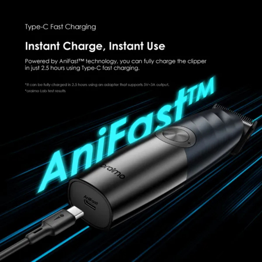 Powered by AniFast™ technology, you can fully charge the clipper in just 2.5 hours using Type-C fast charging.