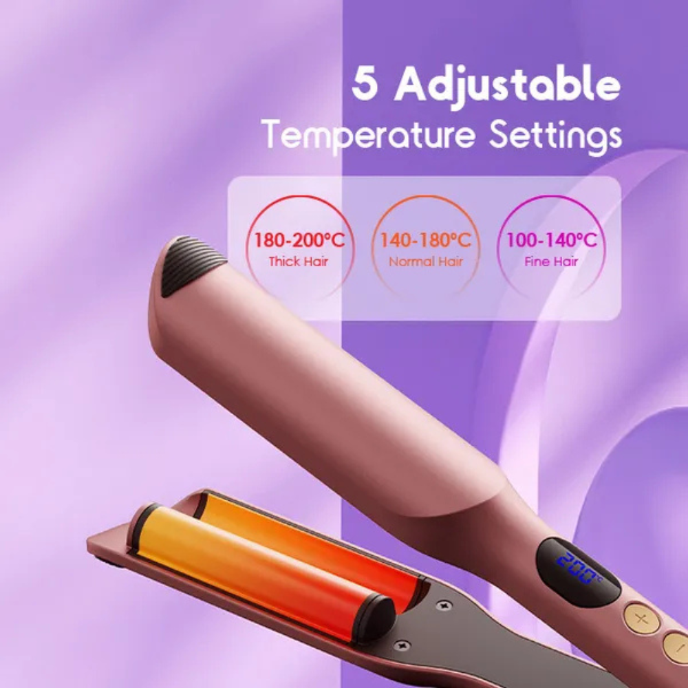 The curler offers a range from 100 to 200 degrees Celsius in 20-degree increments for tailored styling.