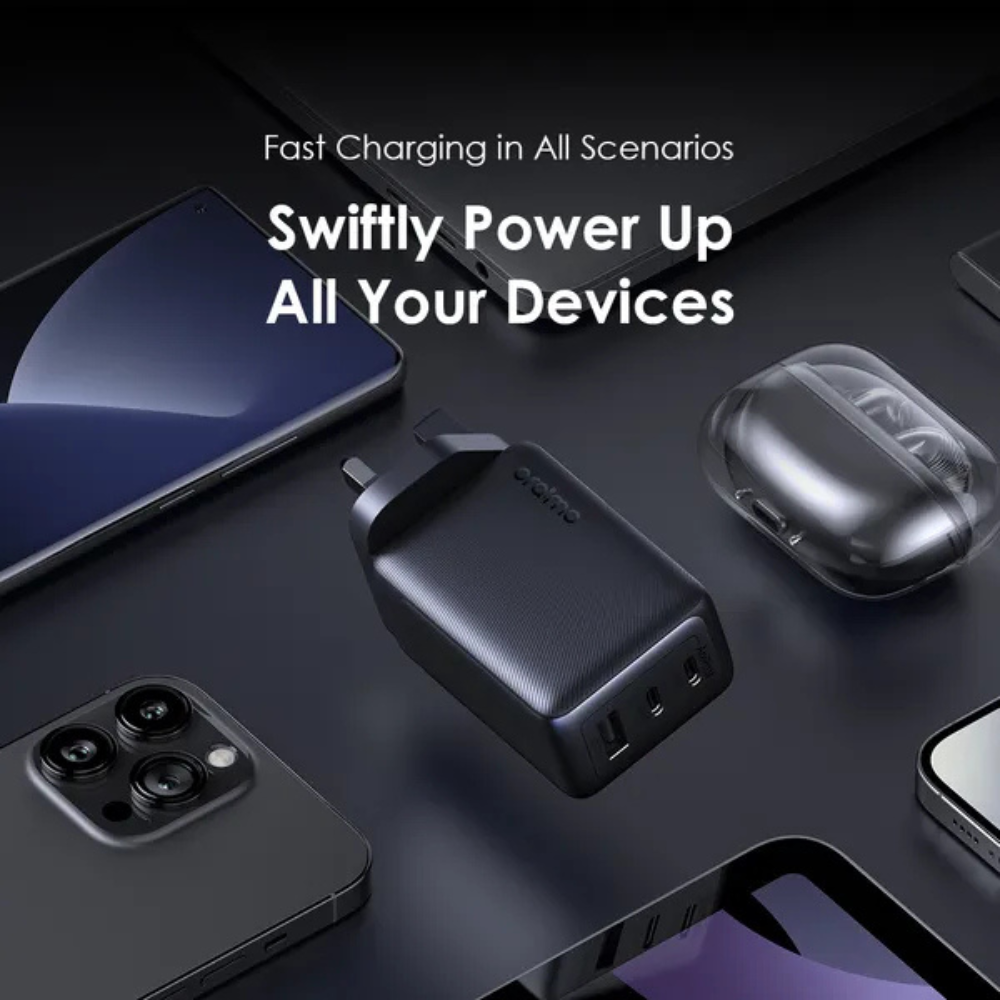Say goodbye to long waits—oraimo HyperGaN 65 rapidly charges everything from your phone to your laptop, smartwatch, earphones, and headset.
