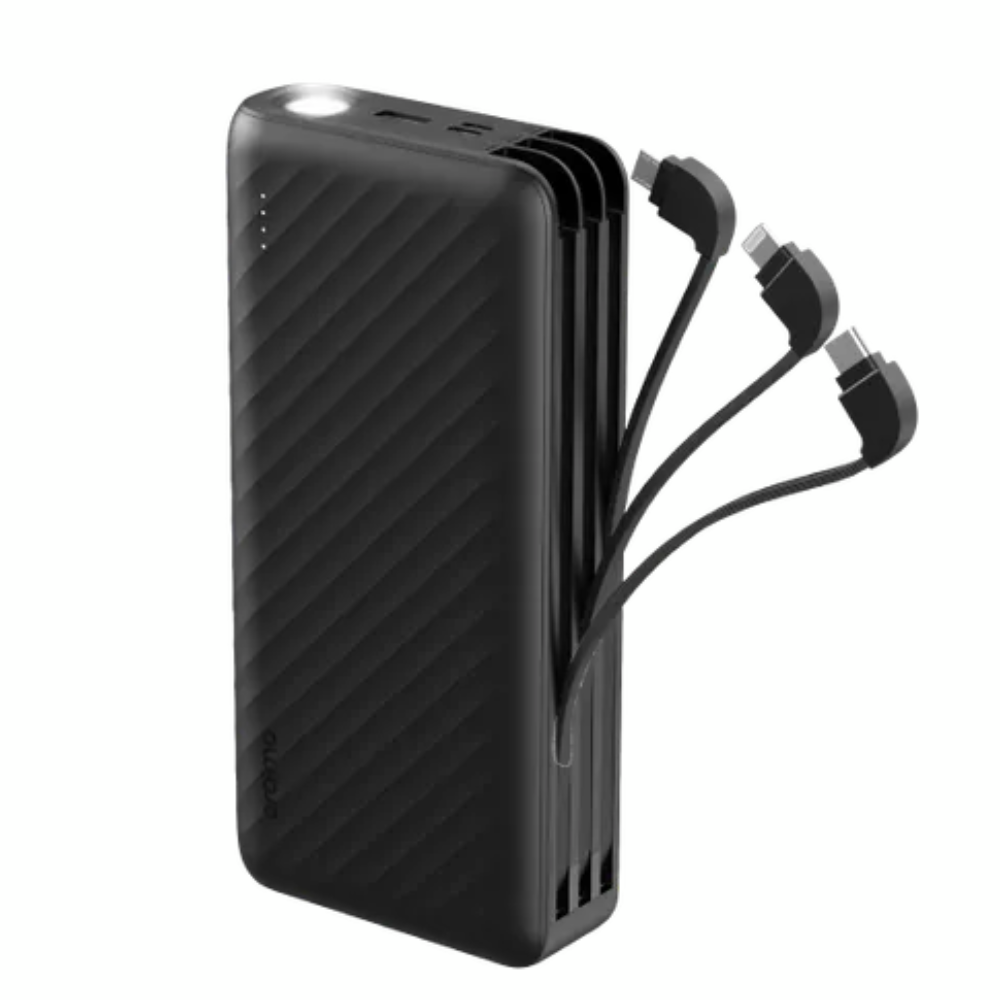 No need to carry cables or charger kit when you’re on the go. It comes with built-in Type-C, Micro-USB, and Lightning charging cables to meet your daily charging needs.